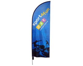 Flaga reklamowa na maszcie przenośnym, wysokość około 3.5m